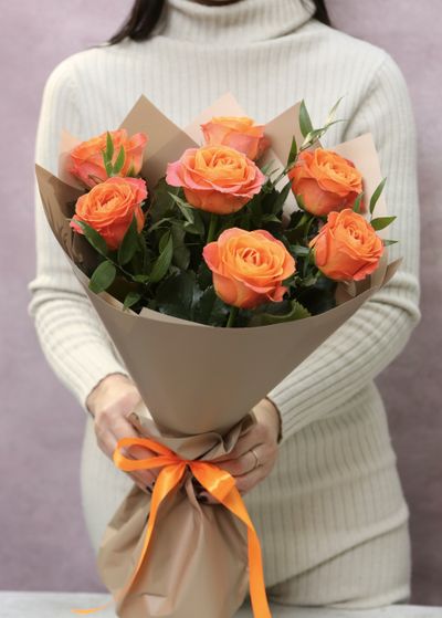 Букет из 7 роз с зеленью