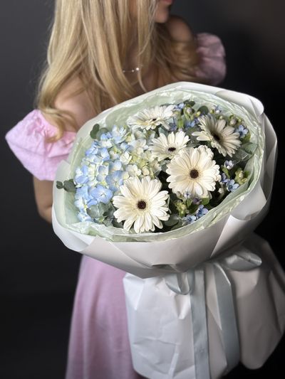 Букет с голубой гортензией "Обнимая облака"