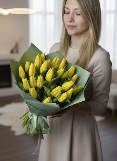 Букет из 25 желтых тюльпанов