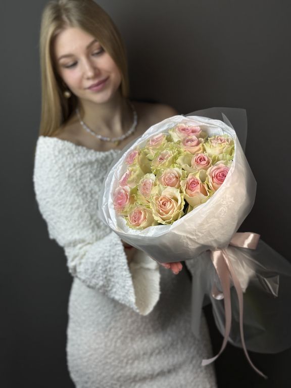 Букет из 15 нежных роз (35-40 см)