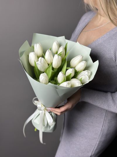 Букет из 15 белых тюльпанов