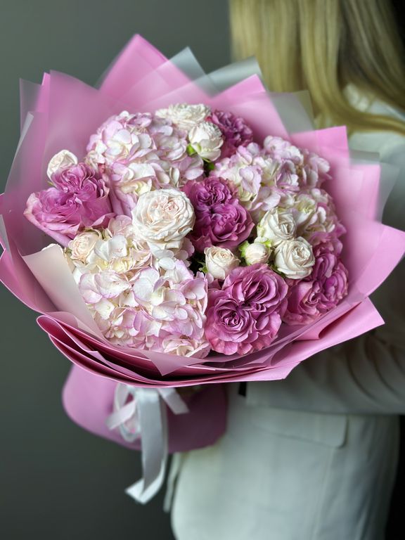 Букет с гортензий и розой