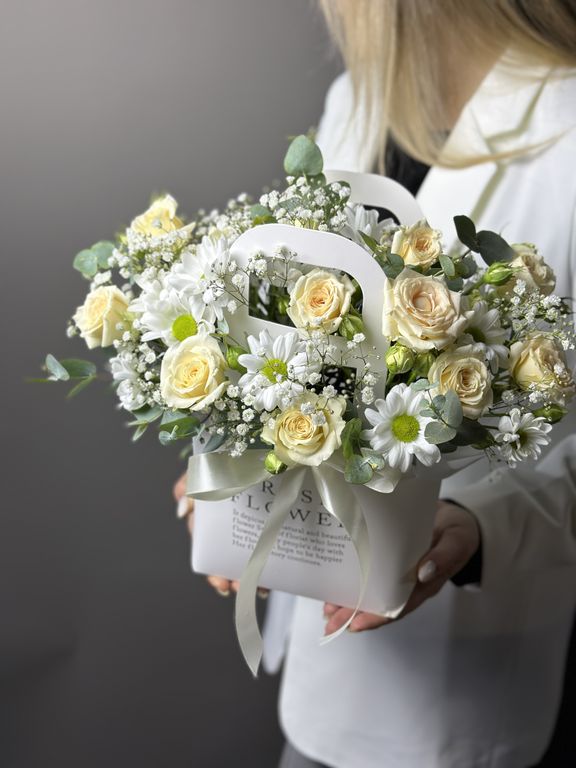 *Возможны замены некоторых сортов цветов (из-за ограничения сезонности, поставки) на релевантные или иные похожие сорта с сохранением визуального эффекта и настроения, объёма, палитры и стоимости продукта, с обязательным согласованием замен с заказчиком.