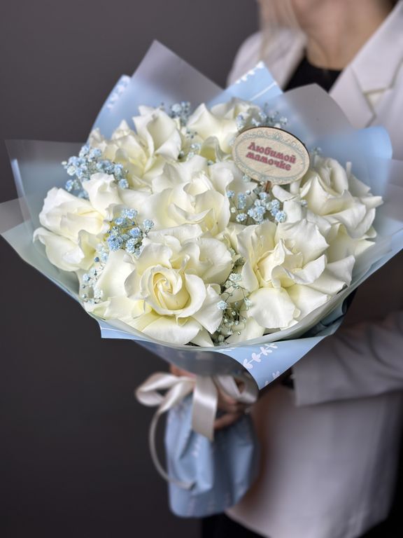 Букет из белых французских роз Любимой мамочке