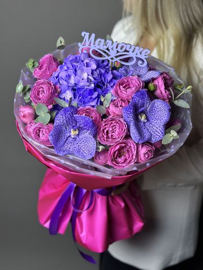 Букет с гортензией, пионовидной розой Мамочке