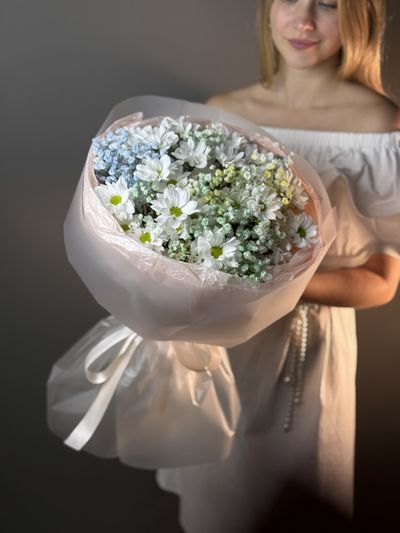 *Возможны замены некоторых сортов цветов (из-за ограничения сезонности, поставки) на релевантные или иные похожие сорта с сохранением визуального эффекта и настроения, объёма, палитры и стоимости продукта, с обязательным согласованием замен с заказчиком.