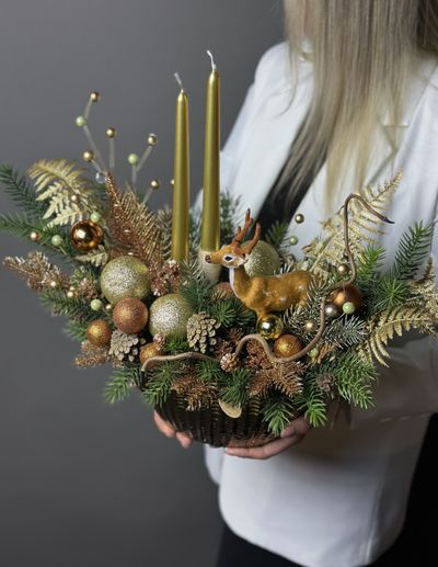 Новогодняя композиция со свечами и оленем 5 800 ₽ В корзину Купить в 1 клик В корзину Купить в 1 клик Поделиться