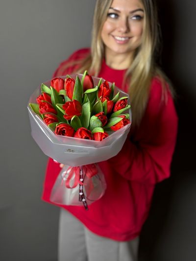 Букет из красных тюльпанов ,15 шт