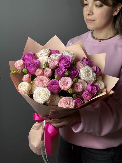Букет из пионовидных кустовых роз, 9шт 4 950 ₽ В корзину Купить в 1 клик В корзину Купить в 1 клик Поделиться
