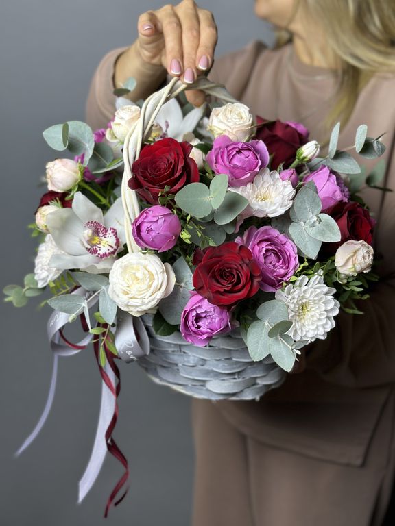 *Возможны замены некоторых сортов цветов (из-за ограничения сезонности, поставки) на релевантные или иные похожие сорта с сохранением визуального эффекта и настроения, объёма, палитры и стоимости продукта, с обязательным согласованием замен с заказчиком.