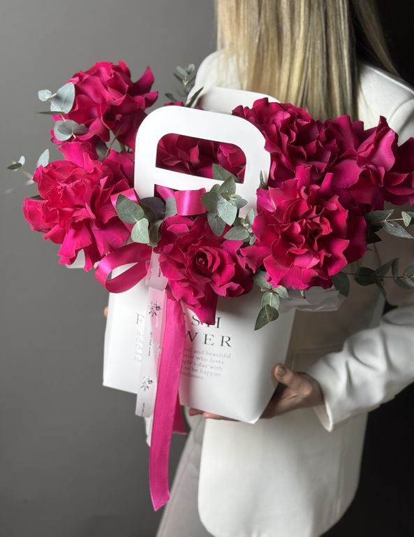 Яркая сумочка с французскими розами 3 790 ₽ В корзину Купить в 1 клик В корзину Купить в 1 клик В составе -роза 7 шт -эвкалипт -сумочка -оазис -лента В составе -роза 7 шт -эвкалипт -сумочка -оазис -лента Поделиться