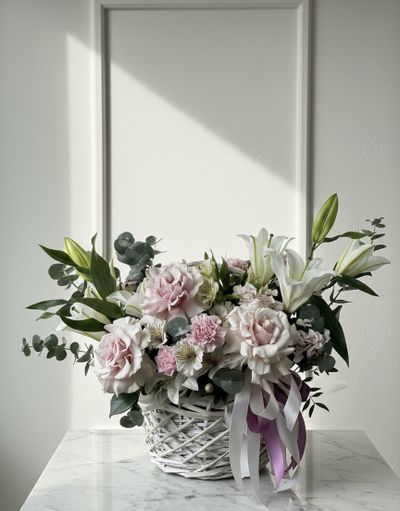 Шикарная корзина с лилиями и розами