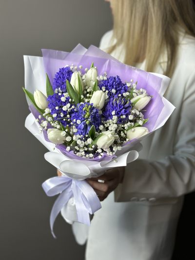 Букет ТЮЛЬПАНЫ белые -Гиацинты